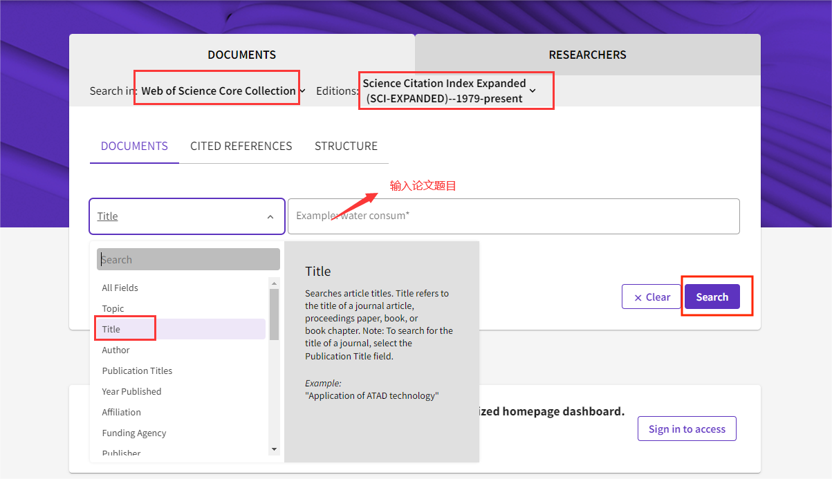 登录Web of Science官网,选择“Web of Science核心合集”,输入论文标题进行检索,并确认显示“已检索”状态。