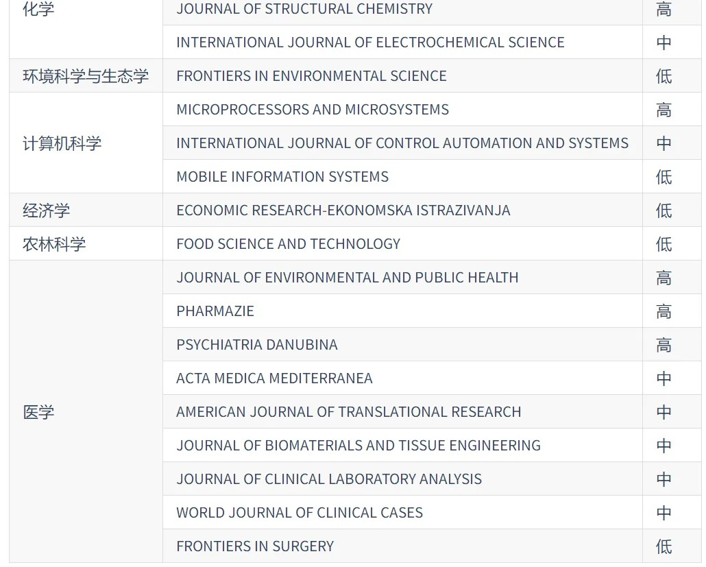 中科院发布的《国际期刊预警名单》(首要参考)。