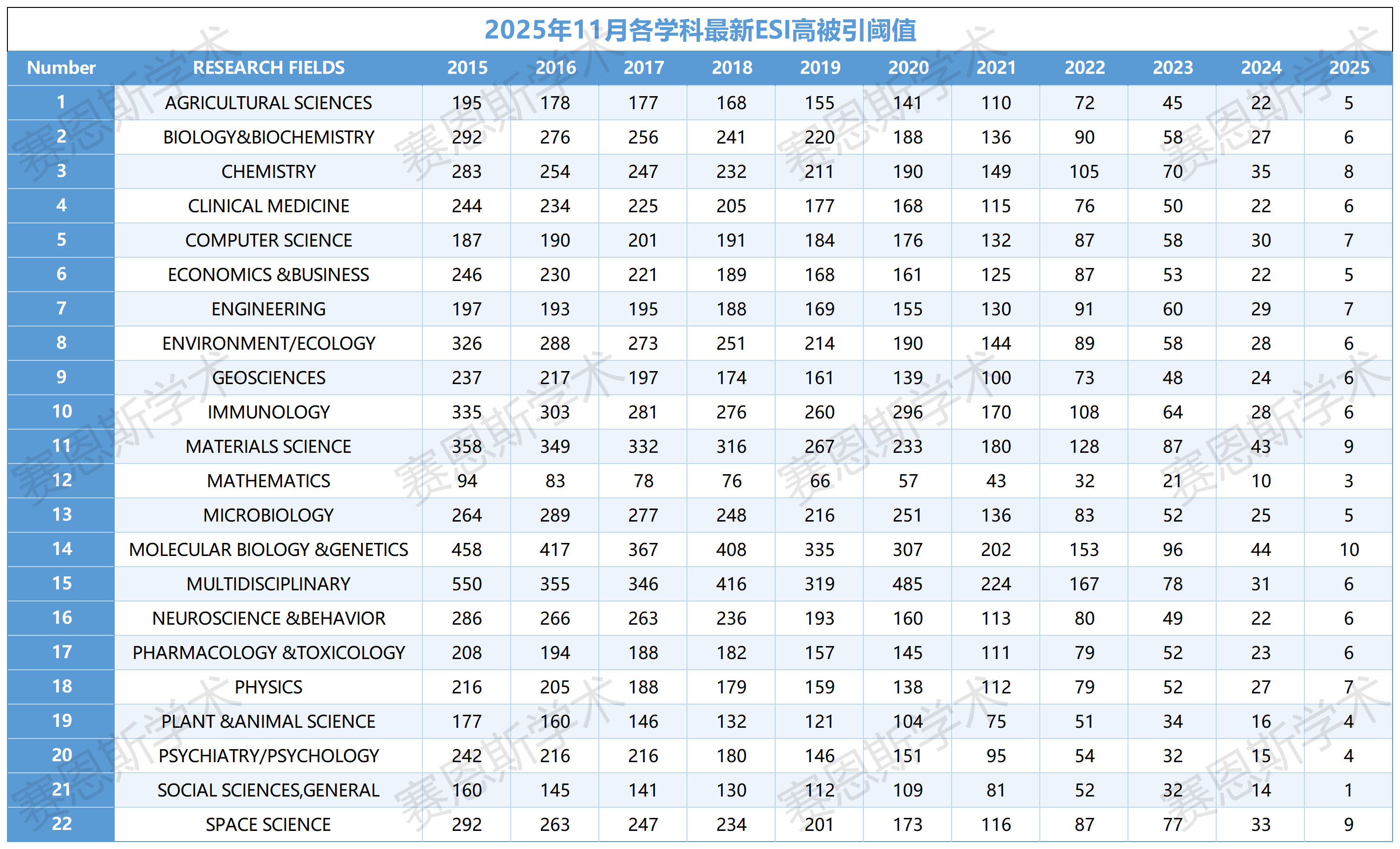 回顾上一周期的变动情况,大多数学科的门槛均有小幅攀升,这反映了全球科研产出质量与竞争烈度的同步增强。