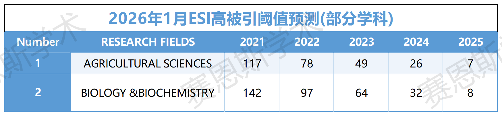 根据ESI每奇数月第二个周四更新的惯例,我们结合了11月份的历史数据及近五年的趋势模型,对部分学科的阈值表现进行了预测。